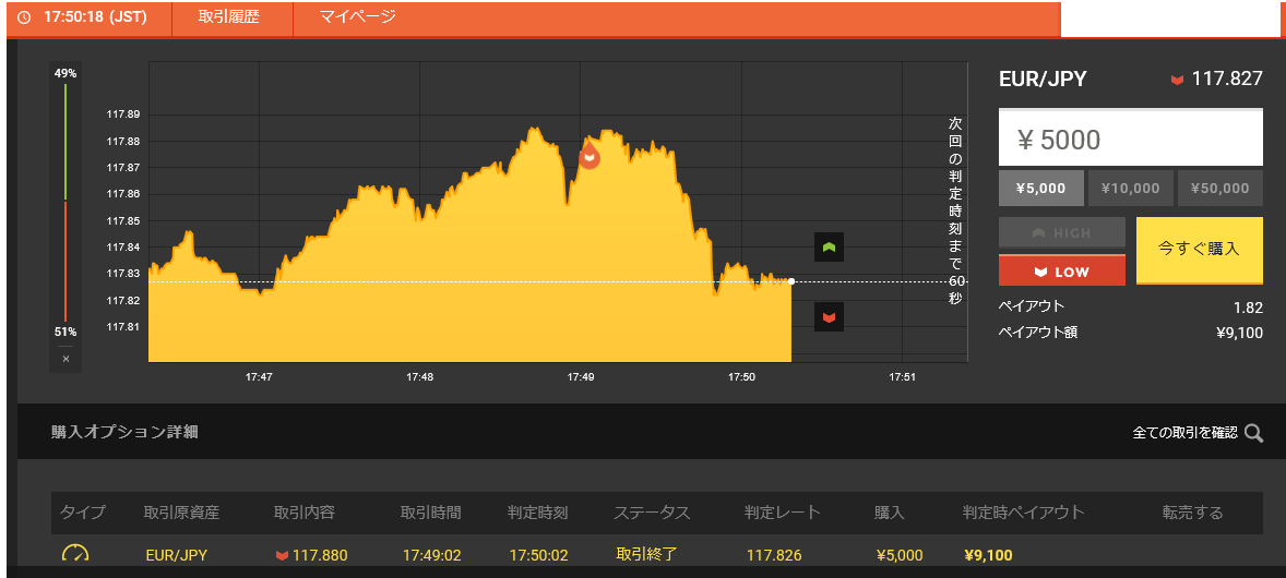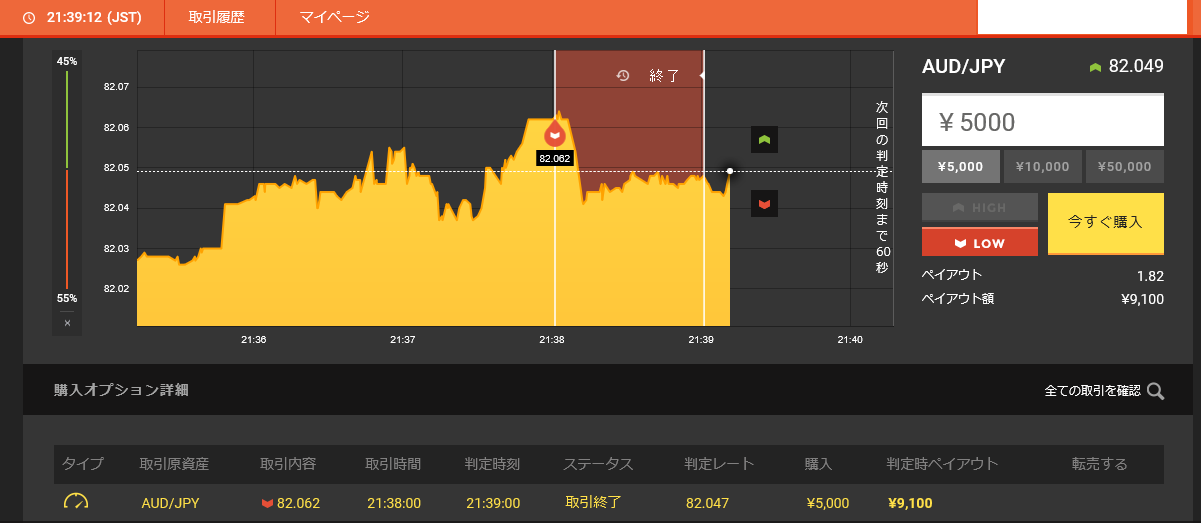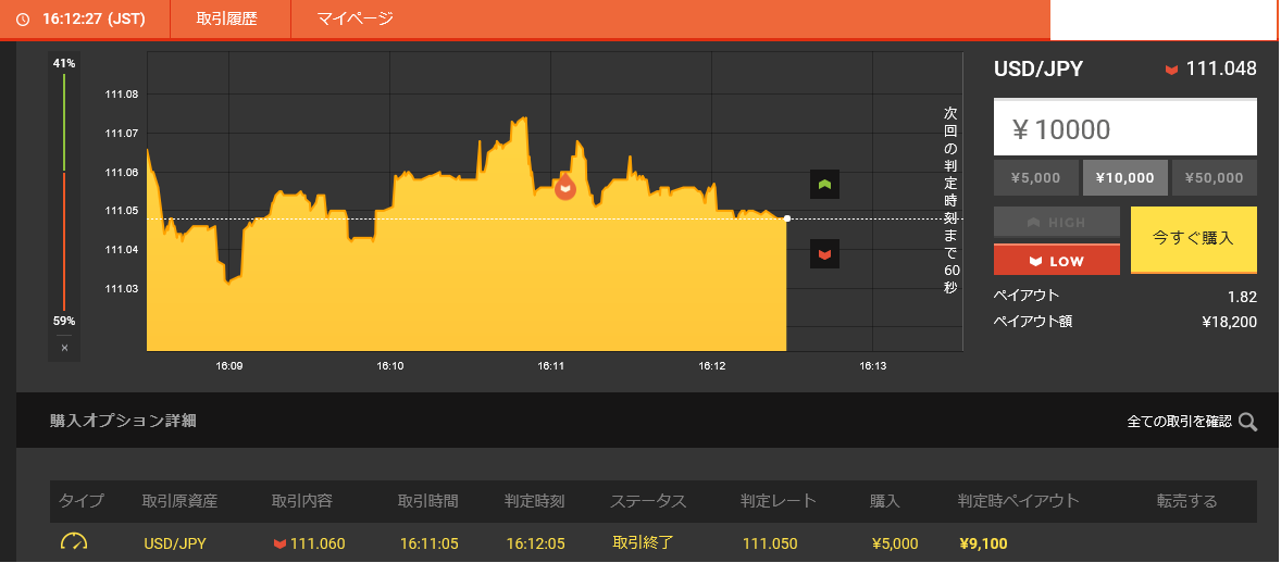 長期手法(15分判定)と短期手法(1分判定)を織り交ぜて賭けました。