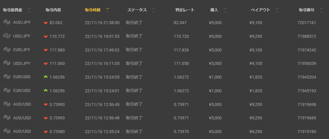 ペイアウトが9250円のところは1分判定ではなく、15分判定です。