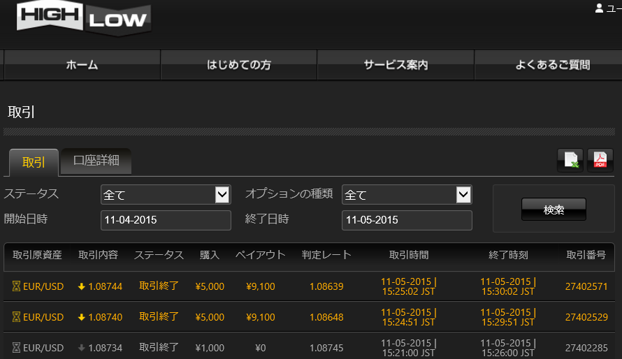 バイナリーの結果の写真ですが、ハイローオーストラリアです。